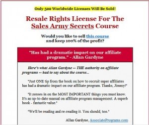 A few days ago Jimmy D. Brown announced a resale rights offer for his SalesArmySecrets.com course.